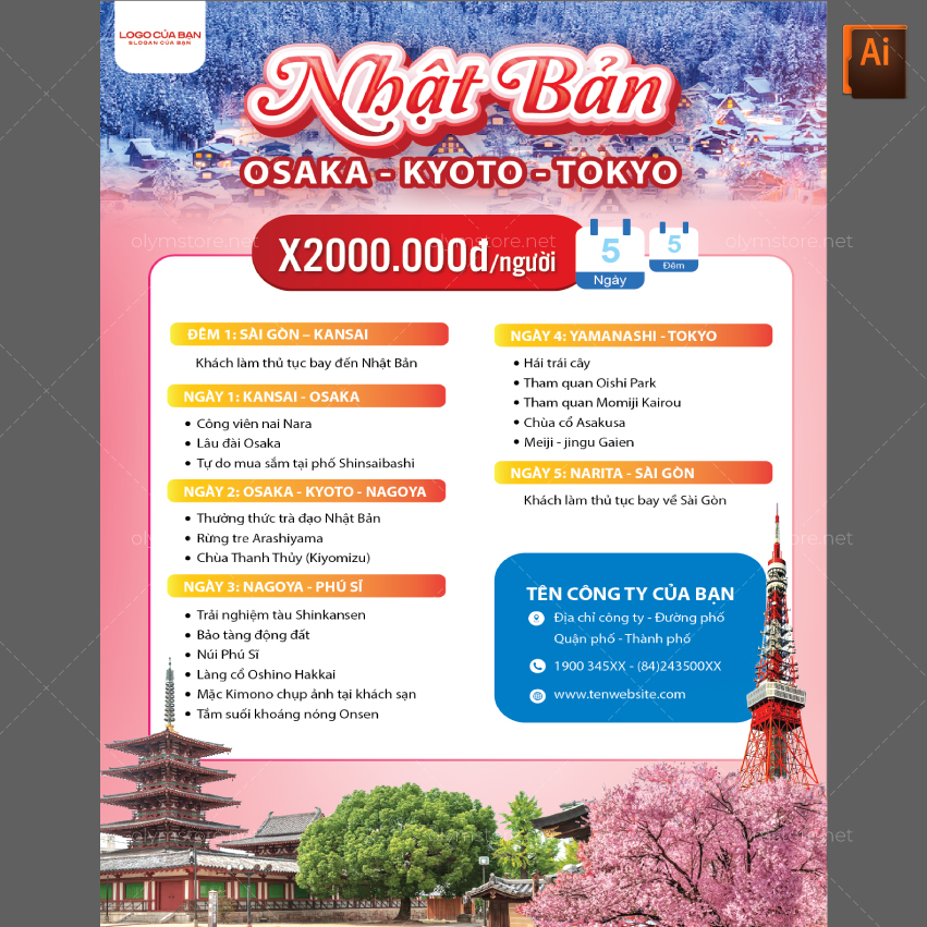 Lịch trình tour Nhật Bản