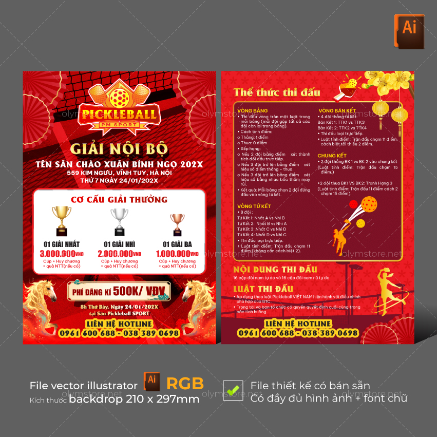 Backdrop pickleball tết nguyên đán